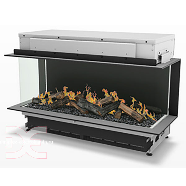 Модель имеет закрытую конструкцию газового камина с тремя стеклами для панорамного обзора пламени и с зеркальной задней стенкой для увеличения объема топки. В общественных зонах, ресторанах, а также в других пространствах с большим потоком людей такое решение сохранит первозданный вид очага. Стекла в модели быстросъемные, благодаря чему можно быстро и без демонтажа получить доступ к топочной корзине, чтобы дополнить ее декоративными элементами по вкусу.